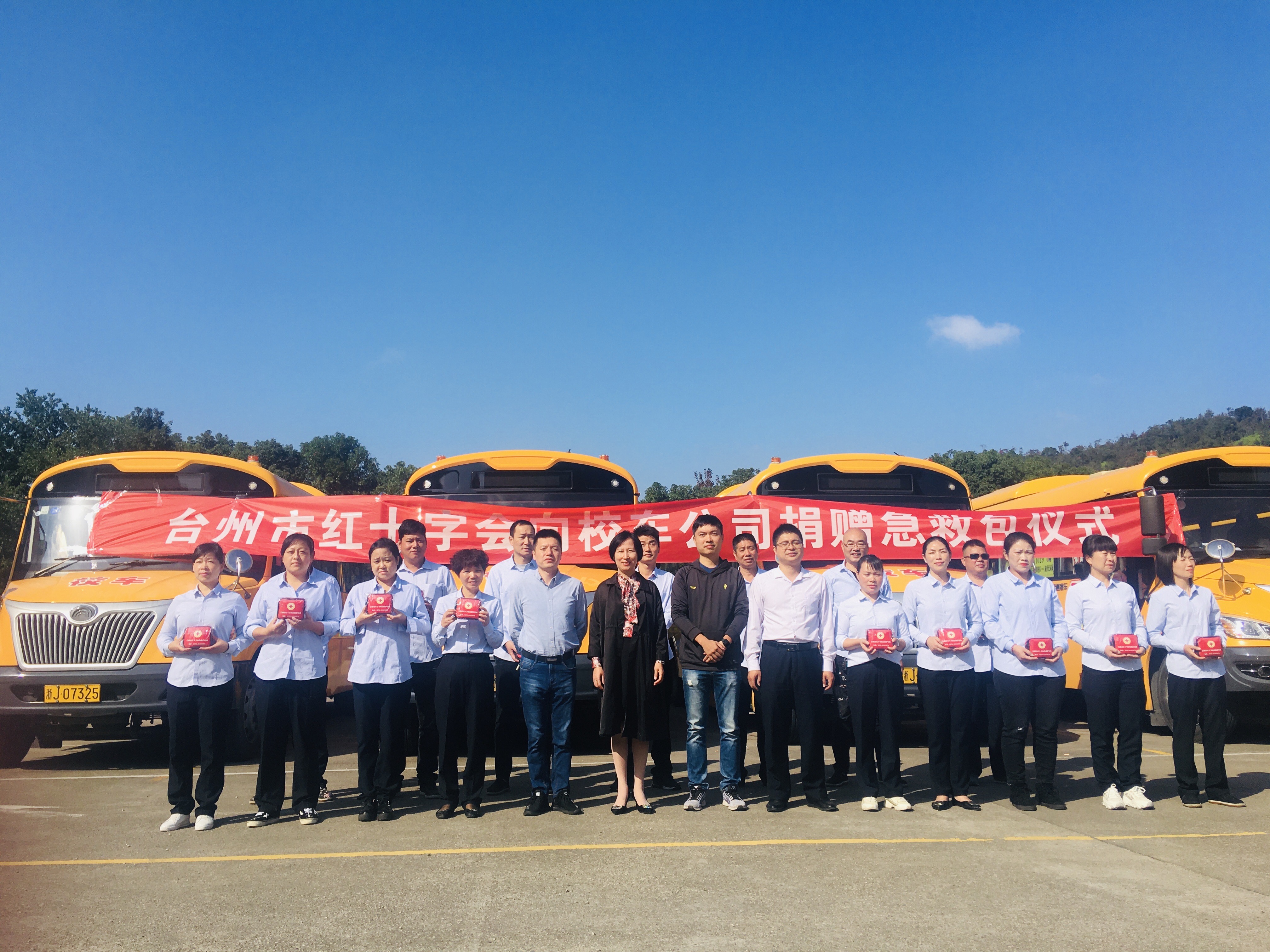 10月20日上午,市紅十字會急救包捐贈儀式在校車公司舉行。市紅十字會賑濟救護處處長王英姿、校車公司副董事長蔣匯力、副總經理蔡國君等參加捐贈儀式。
