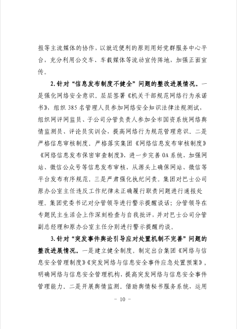 中共臺州市公共交通集團有限公司委員會關于巡察整改進展情況的通報