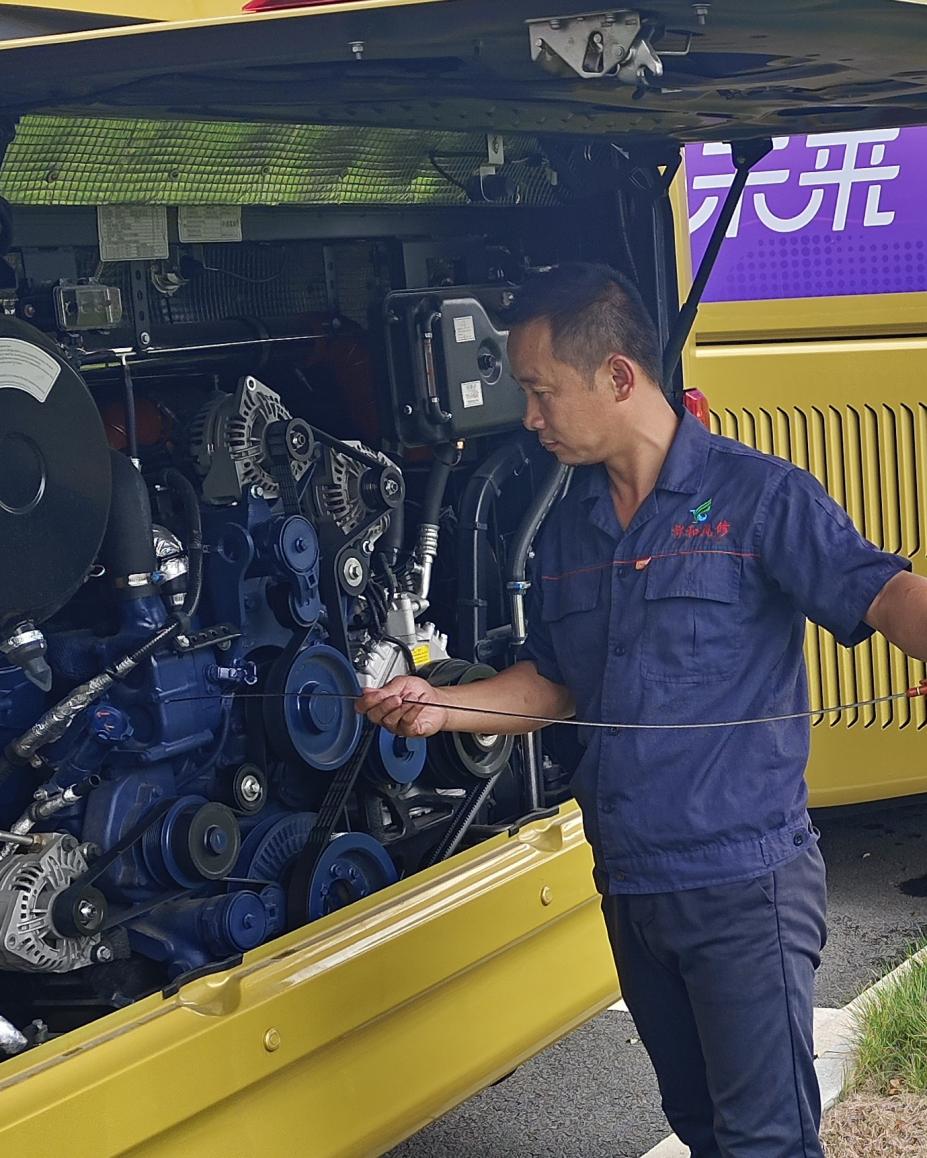 三、“補氣血”,做好車輛檢查。修理公司修理人員攜手宇通服務有限公司售后技術人員,堅持“安全隱患零容忍”原則,嚴格按照相關技術要求標準檢查宇通亞運賽事官方車輛,全面檢查車輛的發動機系統、底盤、電器、空調等部位,重點檢查油路、電路、剎車、轉向等系統性能。檢查車輛共計30輛,發現問題4項,現場及時將問題車輛進行維修維護,從根源上杜絕和防范安全隱患。
