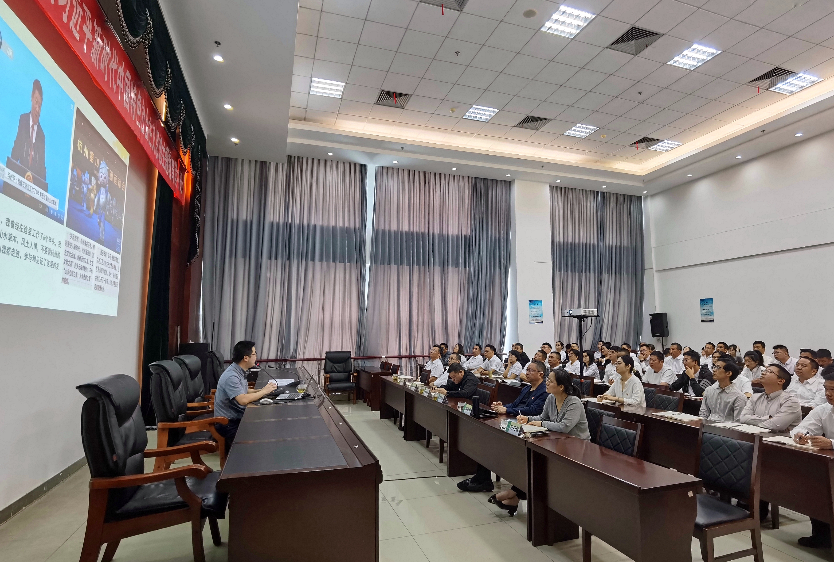 開班儀式后,臺州學院馬克思主義學院盛躍明教授作了題為《習近平臺州足跡——循跡溯源學思想促踐行》的專題輔導報告。
