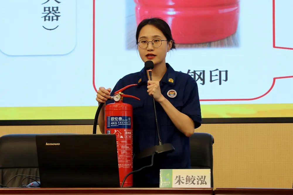 朱鮫泓圍繞消防基礎知識、火災應急處理、高層建筑火場逃生要點三大方面,通過火災成因分析、初期火災撲救、組織人員疏散、正確使用滅火器和防煙面罩等消防安全知識的宣講,同時結合公交車、公交場站、高樓等各領域火災案例多層次、多角度進行講解,引導各部門各單位認真落實消防安全主體責任,加強消防安全管理,將消防安全意識轉化為自覺行動,全面筑牢安全防線。