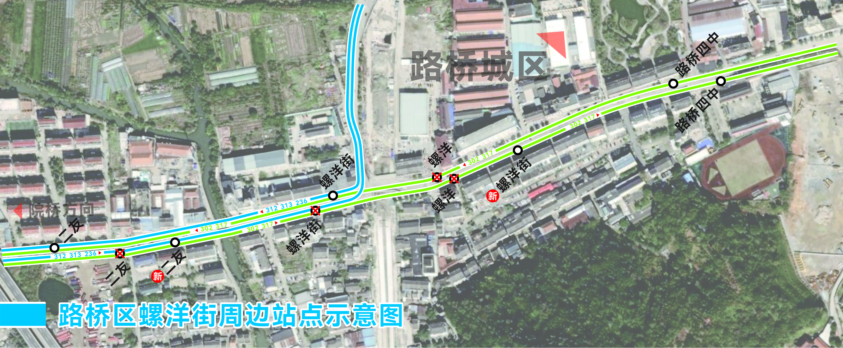 站點遷移后,往路橋城區方向原在“螺洋街”乘坐312路、313路、236路的乘客,請選擇“二友”站點乘車;原在“螺洋街”、“螺洋”乘坐302路、317路的乘客,請選擇新“螺洋街”站點乘車。