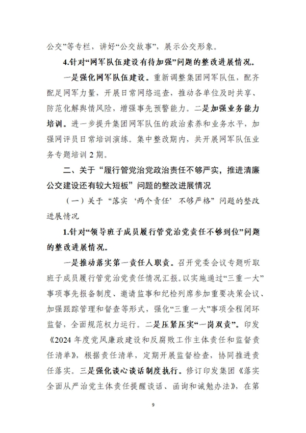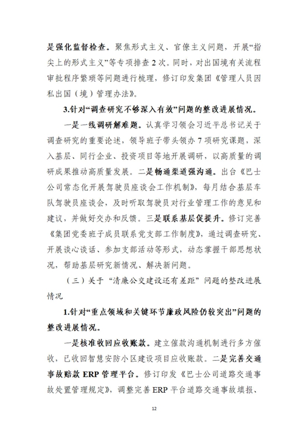 中共臺州市公共交通集團有限公司委員會 關于巡察整改進展情況的通報