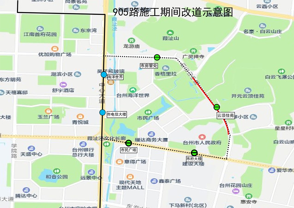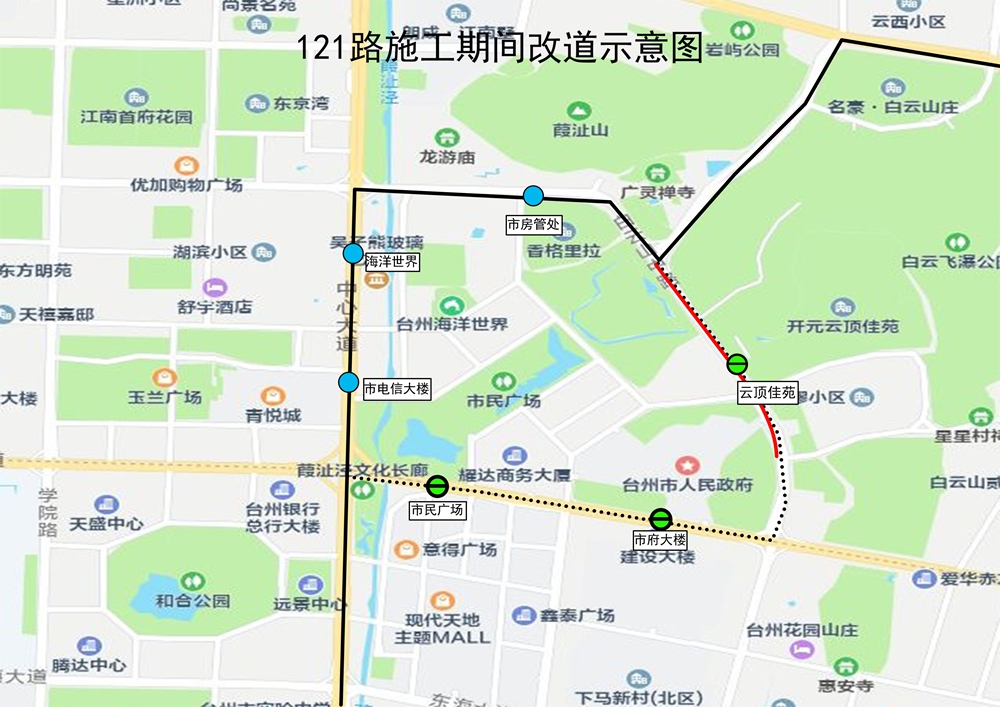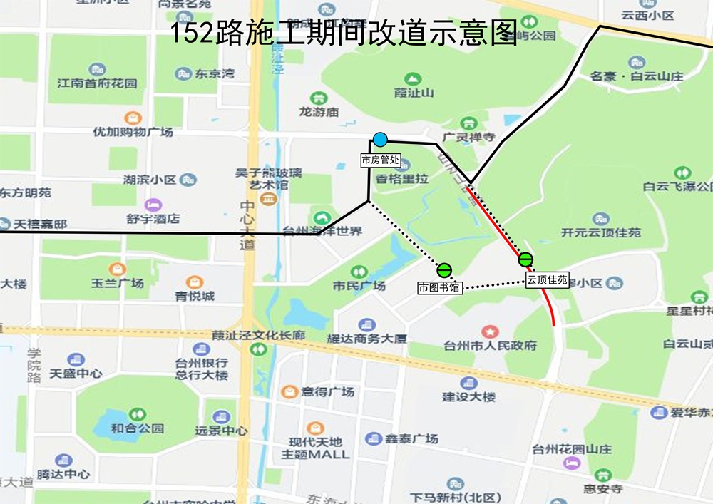根據椒江白云山路城市停車及基礎設施提升工程改造施工需要,因白云山中路(巖嶼南路至市府大道段)于1月11號至12號進行全封閉施工,期間途經施工路段的公交線路作如下改道調整: