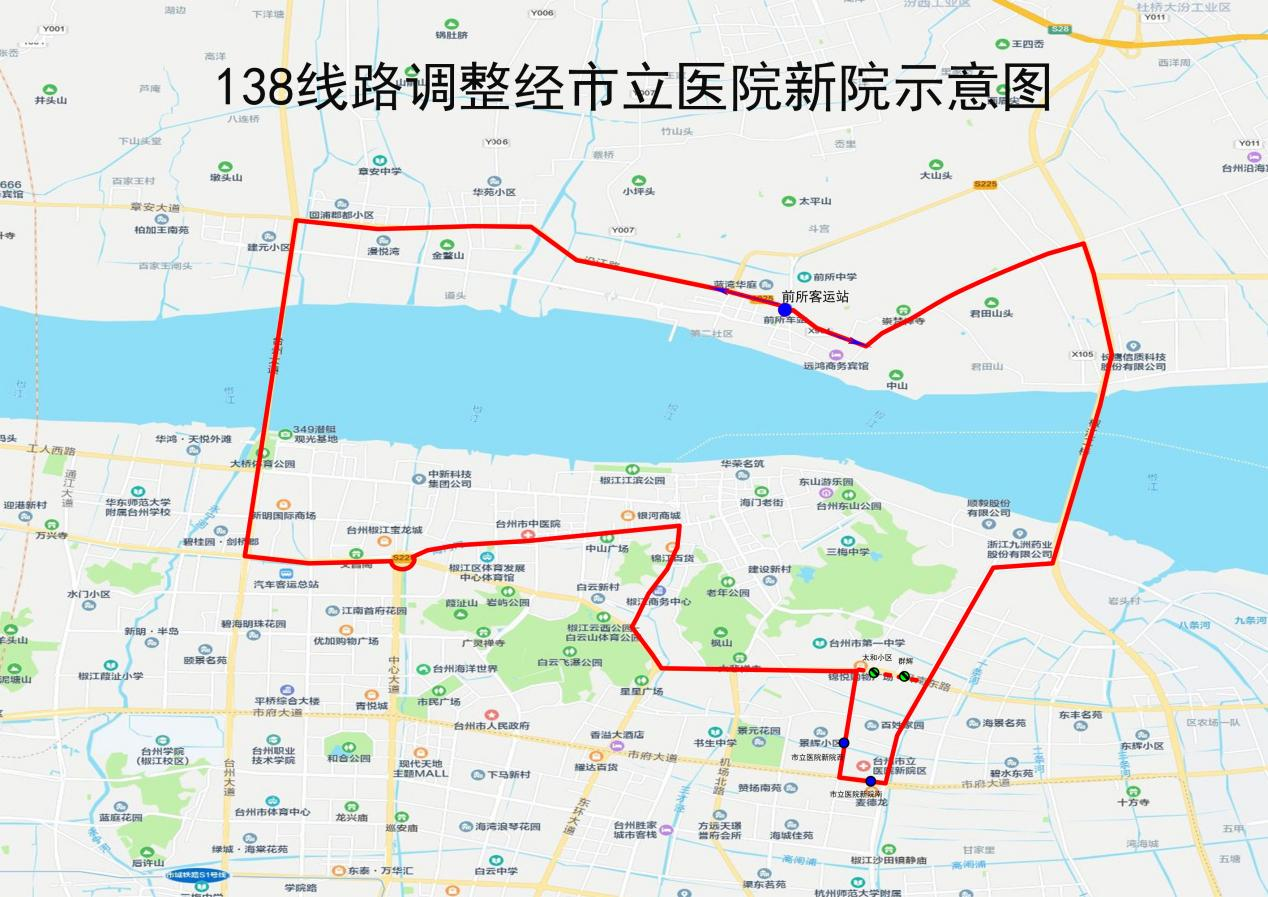 調整后走向:臺小線、章溪線、章梓路、沿江路、臺州大道、黃海公路。
