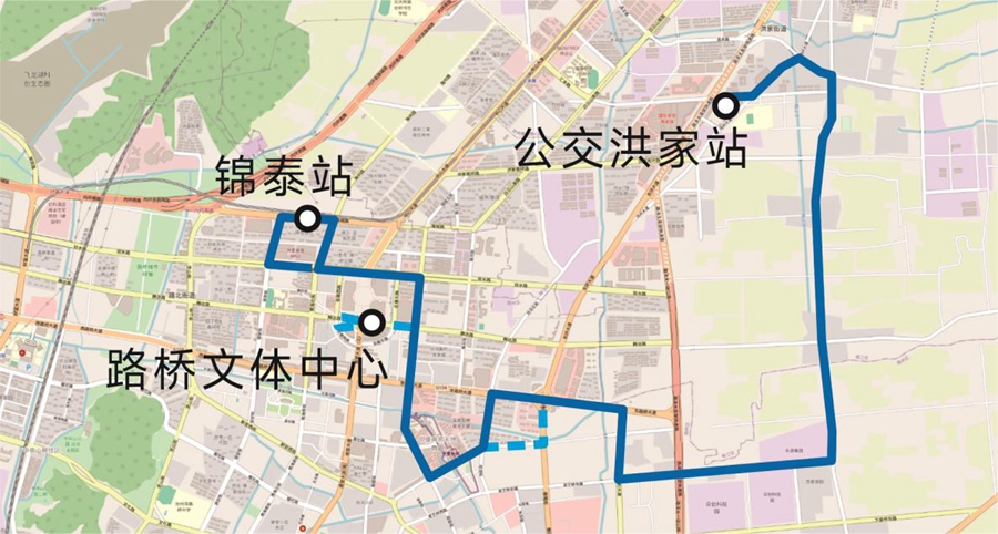 從“公交洪家站-路橋文體中心”變更為“公交洪家站-錦泰站”。