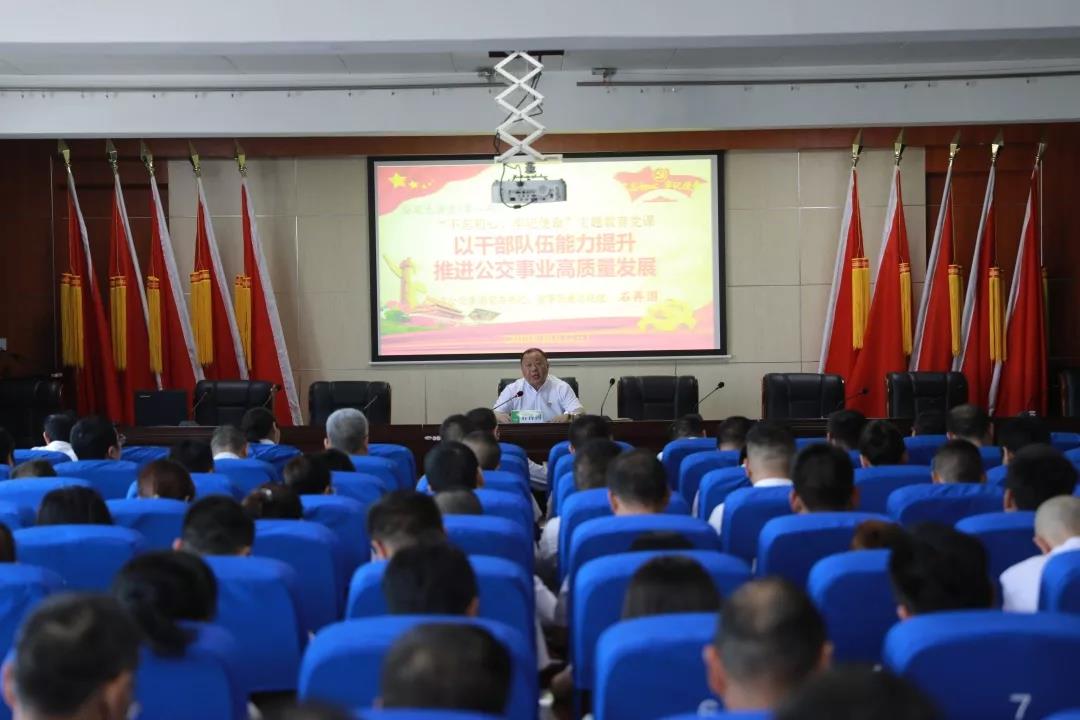 石再國結合集團發展實際,從開展學習教育的體會和感悟、公交隊伍建設的問題與差距、加強干部隊伍建設的有關思考三大方面給全體黨員干部上了一堂發人深省的專題黨課。他表示,通過認認真真學原文、讀原著、悟原理,最大的體會和感悟是,在實現我國社會主義現代化和中華民族偉大復興的新征途上,必須始終高舉中國特色社會主義偉大旗幟,始終堅持習近平新時代中國特色社會主義思想,始終堅持中國共產黨的領導,切實增強“四個意識”、堅定“四個自信”、做到“兩個維護”,進一步砥礪奮斗品格,以頑強的拼搏精神和一往無前的氣勢,共同向著實現中華民族偉大復興的中國夢奮勇前進。