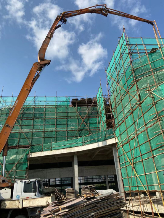 10月23日,集聚區聚英路公交首末站項目候車樓屋面結構混凝土澆筑完成,標志著本項目候車樓結構層順利結頂。